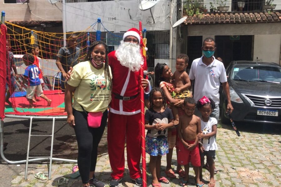 Vestido de Papai Noel, vereador Marcelo Maia visita comunidades de Brotas